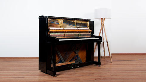 Dieses Instrument haben wir komplett generalüberholt. Neue Besaitung, neue Wirbel. Neue Hammerköpfe mit neuen Mechanikbestandteilen. Elfenbeintastatur erhalten und aufpoliert.