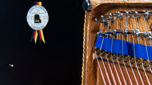 Konzertklavier Das Konzertklavier Modell A wird bereits seit vielen Jahren in der bewährten Form hergestellt. Der Rasten ist mit 5 Spreizen versteift und sichert beste Stimmhaltung. Ein dynamischer Resonanzboden verleiht diesem Instrument eine hohe Modulationsfähigkeit. Eine elegante angenehme Spielart wird jeder Anforderung gerecht. Auf Wunsch gibt es dieses Klavier mit zusätzlichen Verzierungen. Edelfurniere aus Wurzelholz können Lisenen und Füße elegant in Szene setzen. Der Oberrahmen kann auf Wunsch mit einem Medaillon verziert werden. Ein Klavier im gediegenen Design und sichtbarer Qualität bis ins Detail. Das Blüthner Modell A / 124 cm