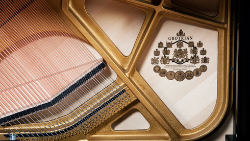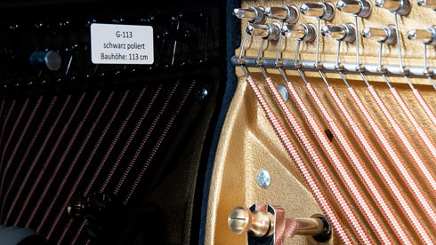 Seit 1835 fertigt Grotrian-Steinweg erlesene Flügel und Klaviere für allerhöchste Ansprüche an Spielfreude, klangliche Bandbreite, Beständigkeit und Ästhetik. Die Klaviere und Flügel werden vollständig in der Braunschweiger Manufaktur hergestellt, und das zu 80% in Handarbeit mit viel Liebe zum Detail. Dabei werden nur die besten Materialien weltbekannter, überwiegend deutscher Zulieferfirmen für die Fertigung dieser Instrumente verwendet. Ob Edelholzfurniert oder Uni lackiert in Polyesterlack. Ganz nach den individuellen Wünschen der Kunden. Seit Generationen sind diese Instrumente der perfekte und treue Begleiter vieler Pianisten und Institutionen auf der ganzen Welt. ·Das Holz Für Instrumententeile, die hart und belastbar sein müssen, wird Buchenmassivholz verwendet. Dazu gehören die Flügelfüße und die Resonanzbodenlager. Für die Resonanzböden selbst hingegen wird sorgfältig ausgewähltes Bergfichtenholz eingesetzt, das mindestens 200 Jahre alt ist. Bei diesen Hölzern sind die Jahresringe besonders eng, und das Holz ist damit besonders homogen. ·Die Sternraste Die Rasten in Sternform werden bei Grotrian-Steinweg schon seit Anfang des letzten Jahrhunderts beim Bau der Klaviere verwendet, denn sie sind die beste Konstruktion, um Spannungen gleichmäßig aufzunehmen. Das Fräsen und Bohren der sternförmigen Rastentafel, der Pianoseitenwände, der Zierleisten und Schlossleisten wird auf einem CNC-Bearbeitungszentrum durchgeführt. Dies ermöglicht allerhöchste Präzision – und darauf kommt es in diesem Arbeitsschritt an. ·Die Verleimung Bei Grotrian-Steinweg werden die Wände für alle Flügel in einer einzigartigen Korpuspresse bei einer Temperatur von 90° C verleimt und unter sehr hohem Druck in Form gebracht. Da beim Verleimen und Furnieren ein absolut wasserfester 2-Komponenten-Leim eingesetzt wird, ist eine dauerhafte Verleimung in allen Klimazonen der Erde garantiert. ·Platte & Raste Die Verbindung der gusseisernen Platte mit der hölzernen Sternraste hält einer Saitenspannung von mehr als 20 Tonnen stand und verleiht den Instrumenten aus dem Hause Grotrian-Steinweg die außergewöhnliche Stabilität. Das Besondere der Grotrian-Steinweg-Pianogussplatte sind der komplett geschlossene und durchgehend profilierte Rand sowie die exakt berechneten Verstärkungskreuze in der Platte. Diese Platten werden von einem hochspezialisierten Lieferanten gegossen, anschließend computergesteuert gebohrt und gefräst sowie mit Anhängestiften für die Saiten versehen. Nach einer umfassenden Eingangskontrolle erfolgt die Oberflächenveredelung in der Braunschweiger Pianomanufaktur. ·Der Lack Die Spritzkabinen, in denen bei Grotrian-Steinweg der widerstandsfähige Lack aufgetragen wird, sind auf dem neuesten Stand der Technik und minimieren jede Art von Emissionen. Das schont sowohl die Gesundheit unserer Mitarbeiter als auch die Umwelt. Viele Gehäuseteile werden in der elektronisch gesteuerten Gießmaschine in drei Durchgängen geschliffen, gebürstet, lackiert und getrocknet. Der Lack wird nahezu ohne Verlust aufgetragen, was nicht nur Kosten spart, sondern auch die Umwelt schont. Grotrian-Steinweg bietet seine Instrumente nicht nur in klassischem Schwarz Hochglanz an, sondern beizt und furniert auch nach individuellen Wünschen. Zum Beispiel in Nussbaum, Kirsche, Palisander oder Eibe. ·Die Handarbeit Nach der Vorbereitung der Einzelteile beginnt der schrittweise Zusammenbau jedes einzelnen Instrumentes in Handarbeit. Die Raste, der Resonanzboden, die Rippen und die Stege werden miteinander verleimt. Die Gusseisenplatte wird aufgeschraubt, Wirbellöcher werden gebohrt und die Saiten aufgezogen. Anschließend wird das Instrument auf die richtige Größe gefräst und der Klaviaturrahmen aus speziellen Stahlprofilen, der als stabile Plattform für die Klaviatur und Mechanik dient, eingebaut. Danach werden die Klaviatur und die Mechanik exakt eingepasst und das Instrument mehrfach gestimmt, reguliert und intoniert. Bei all diesen Arbeitsschritten kommt es besonders auf Feinmotorik, eine geduldige, ruhige Hand und ein geschultes Gehör an. ·Präzision/Qualität Nach einer Lagerzeit von mindestens 4 Monaten werden die spielbaren rohen Piano- und Flügelrasten bei Grotrian-Steinweg erst am Ende mit dem Gehäuse fest verleimt. Diese Art der Fertigung erfordert ein Höchstmaß an Präzision. Doch sie ermöglicht auch, dass erst ganz am Ende entschieden werden kann, welches Gehäuse in welcher Ausführung um den Klangkörper gebaut wird. So kann Grotrian-Steinweg einerseits mit einer konstanten Qualität produzieren und andererseits schnell auf Kundenwünsche reagieren. Bevor die Pianos und Flügel endgültig fertig gestellt werden, kontrollieren die Handwerksmeister die einzelnen Fertigungsschritte und testen jedes Instrument sorgfältig auf Qualität und Klang. Der Einsatz modernster Technik ermöglicht es, ein Klavier zu bauen, das einen sehr guten Klang hat und dennoch einen vernünftigen Preis