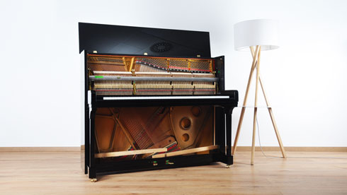 Dieses Instrument haben wir komplett generalüberholt. Neue Besaitung, neue Wirbel. Neue Hammerköpfe mit neuen Mechanikbestandteilen. Neu lackiert