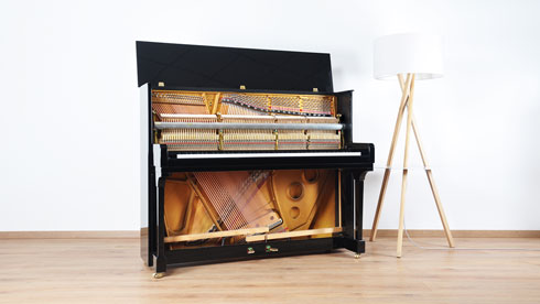 Dieses Instrument haben wir komplett generalüberholt. Neue Besaitung, neue Wirbel. Neue Hammerköpfe mit neuen Mechanikbestandteilen. Neu lackiert